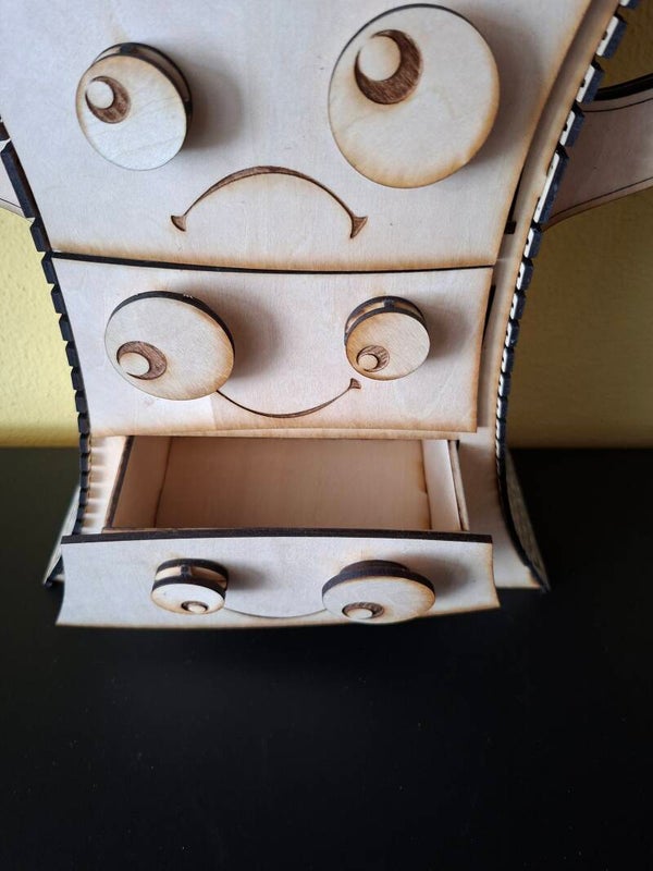Juwelen opbergkastje waarvan alle 7 laatjes open kunnen.